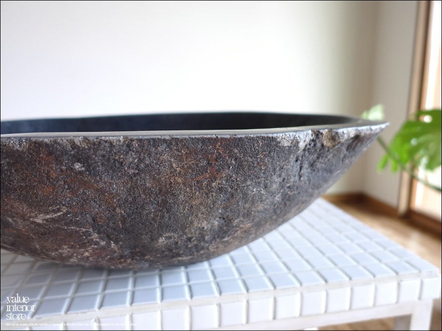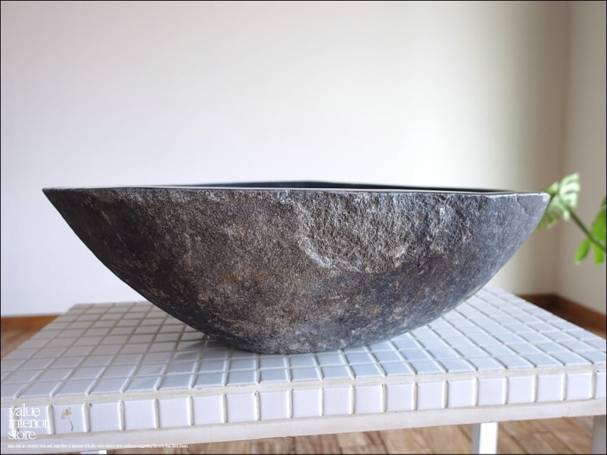 ◇日本製のような正確さは無いかもしれませんが、1点1点出来上がるまでの殆どの工程を手作業で行うインドネシア職人たちの手造りの製法にはとても暖か味が感じられます。また自然石の特徴上、外側の表面は穴や打ち傷、欠けやひび割れ、本体に傾きなどが見受けられる場合がありますが、素材のテイストとしてご了承ください。
