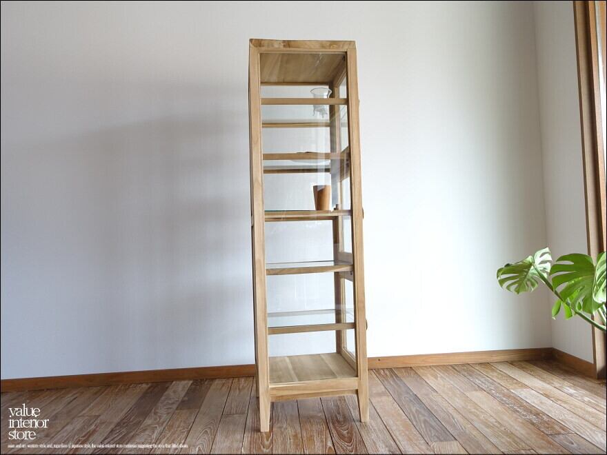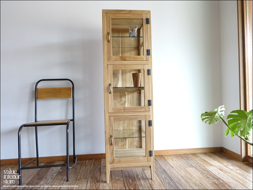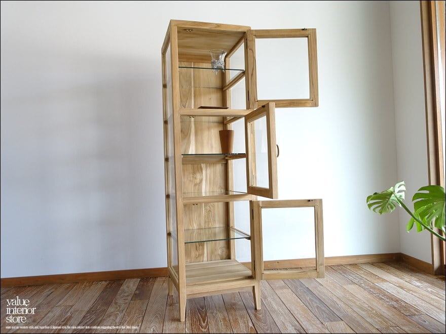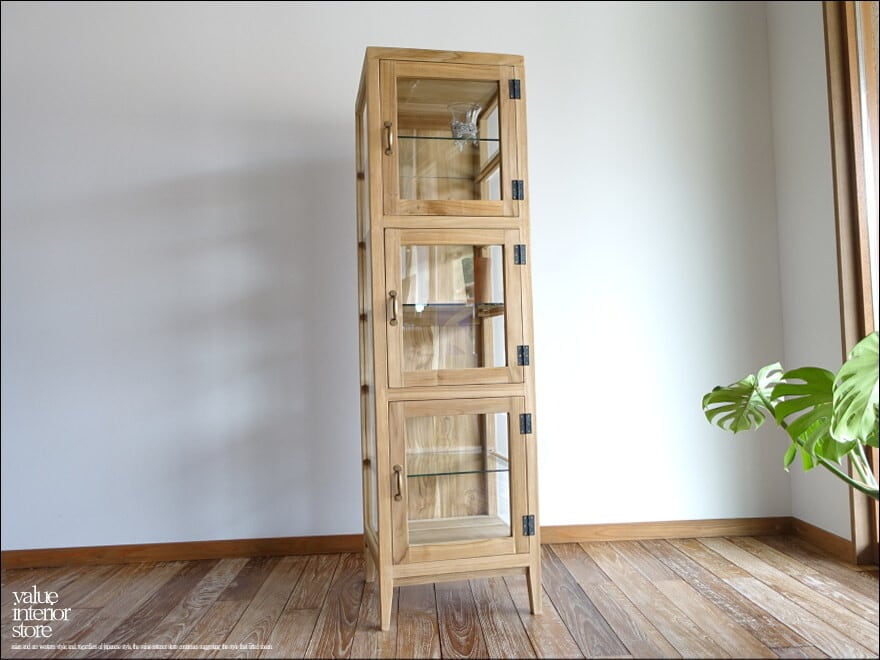 チーク無垢材 ガラスパンケース三枚扉N ショーケース 陳列ケ-ス 飾り棚 食器棚 店舗什器 コレクションケース 展示ケース