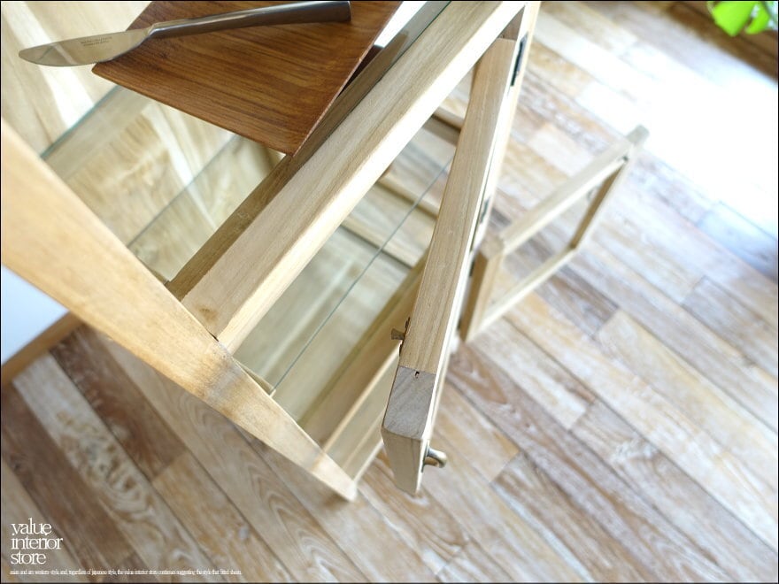 ◇チーク無垢材は人のお肌同様に、長時間、直射日光や冷暖房の風のあたる場所や湿気、乾燥が著しい場所を嫌います。反りや割れ、退色の原因になりますのでお避けください。
