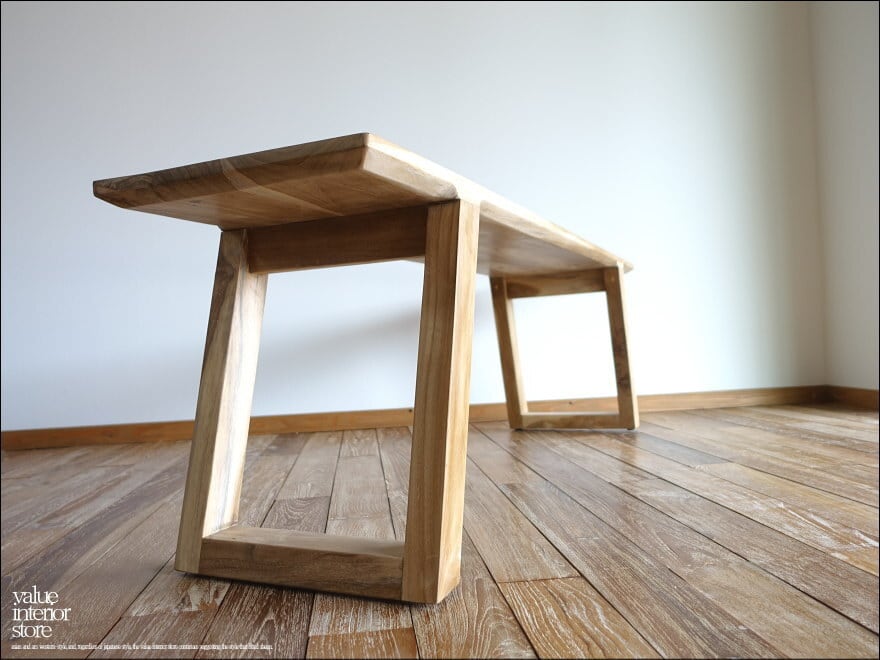 チーク材の独特で美しい木肌が素敵なベンチ。座面下には幕板を入れないシンプルな作りで、座面を支える斜めに入った脚がシャープな印象です。(*発送前に全体に天然オイルを軽く塗布いたします。)スローダウンした素朴な雰囲気をどうぞ。
