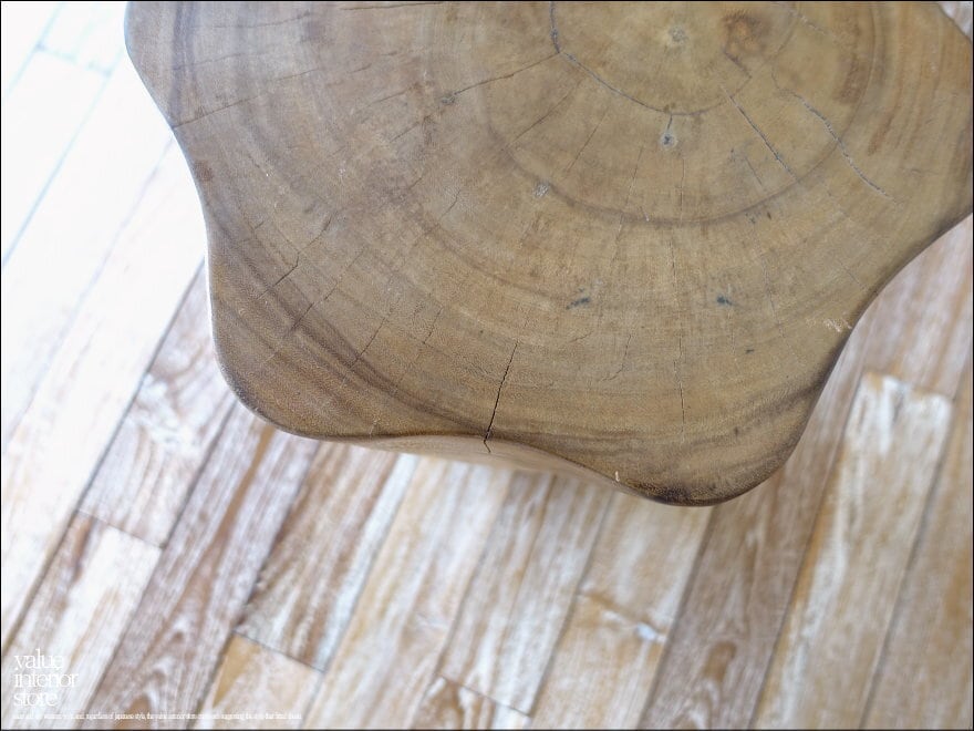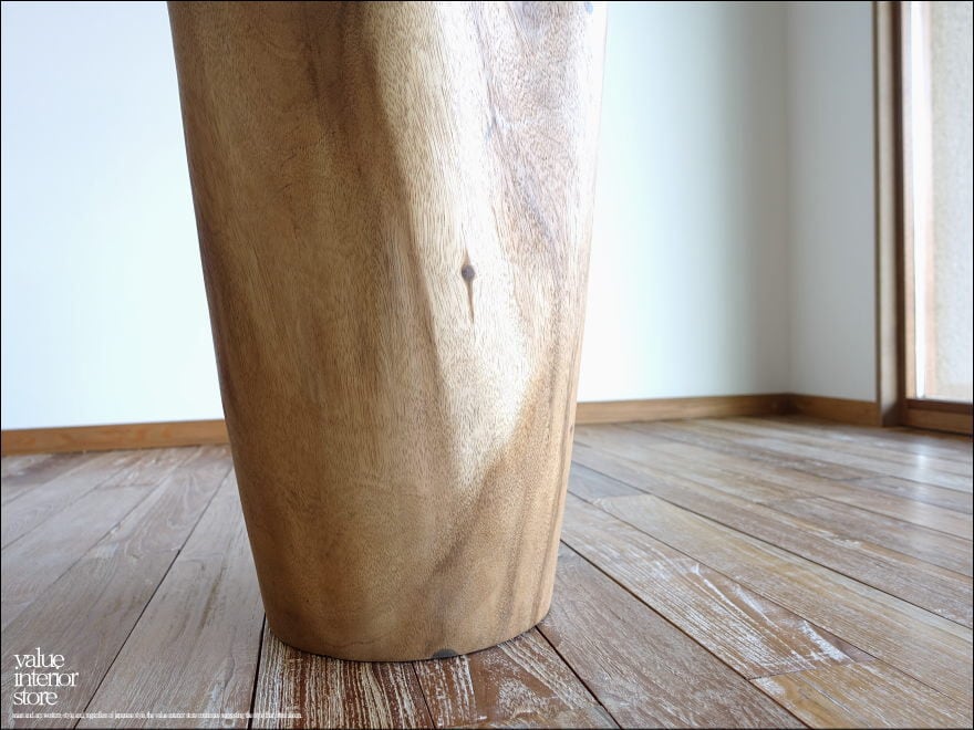 ◇日本製のような正確さは無いかもしれませんが、1点1点出来上がるまでの殆どの工程を手作業で行う、インドネシア家具職人たちの手造りの製法にはとても暖か味が感じられます。小傷、丸太故のひび割れ、フシ穴、濃淡などの無垢材特有の”暴れ”、また埋木などによる補修痕が見受けられますが、素材や手づくりのテイストとして工業品にはない自然の質感をお楽しみ下さい。
