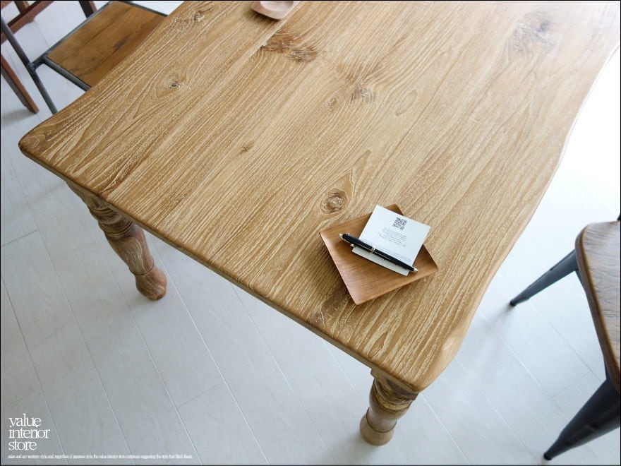 シンプルなデザインで、チークの良さを存分に楽しんでいただける、とてもステキなダイニングテーブル。こんなテーブルで毎日食事ができたらペースダウンできステキでしょうね。ショップやカフェのテーブルとしてもおすすめです。