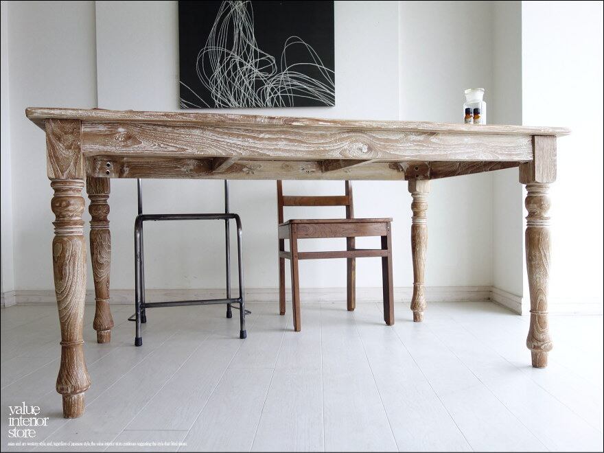 ※商品はオールドチークダイニングテーブルLWW150cm×1点です。その他(イス・小物など)はイメージです。