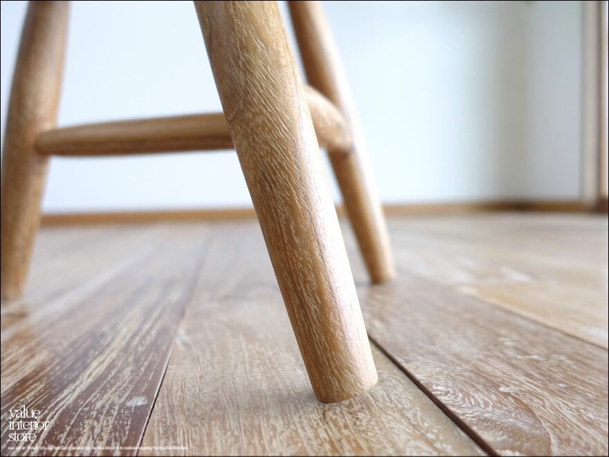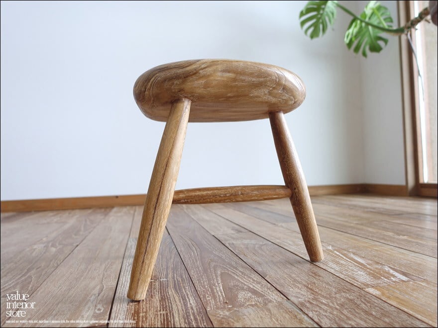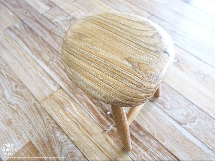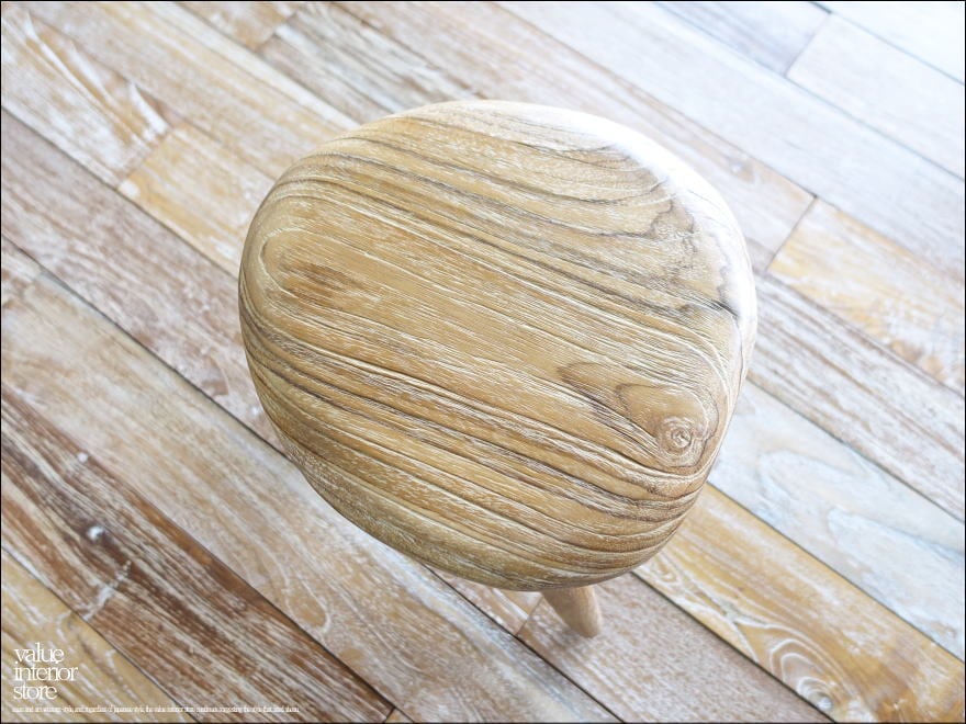 ナチュラルな座面にはチーク材の個性的な木目が現れていて、ナチュラルな雰囲気を存分に楽しめるスツール。細身の脚ですがそれぞれのジョイント部分を丁寧に製作していますので、とてもしっかりとした頑丈な作りです。表面は無垢材の素朴な質感を引き立たせています。