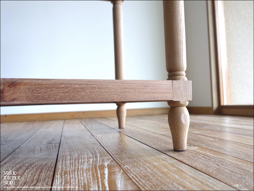 ◇日本製のような正確さは無いかもしれませんが、一つ一つ出来上がるまでの殆どの製作工程を手作業で行う、インドネシア家具職人たちの手づくり製法はとても暖か味が感じられます。細かな傷、ひび割れやフシ穴、お色の濃淡、また反りなどの無垢材特有の”暴れ”や修理痕が見受けられる場合がございますが、無垢材の素材や特徴、また手づくりのテイストとして工業品にはない自然の質感をお楽しみ下さい。