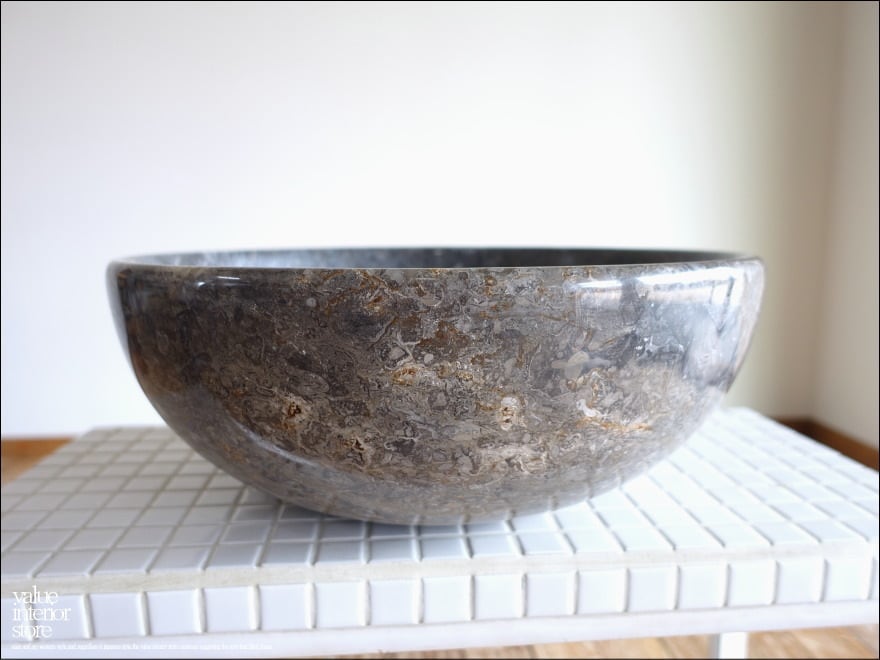 天然大理石 洗面ボウルmince/GY40cm01 ウォッシュボウル 手洗い鉢 手洗器 洗面器 手洗いボウル 洗面用品 マーブル Φ40 × H15cm idawash