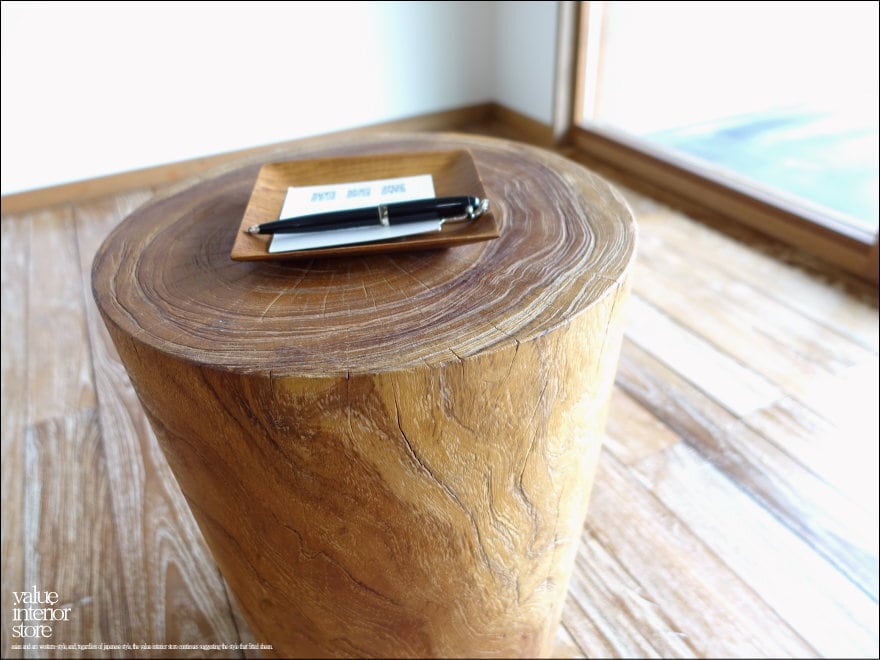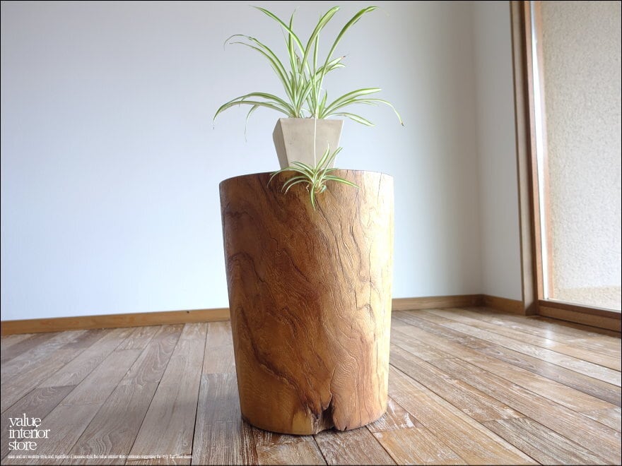 チーク材 無垢材スツールWS/6 イス チェア 丸太 ベンチ 椅子 オールドチーク 花台 ナチュラル 素朴 削出し 一点物 29kg