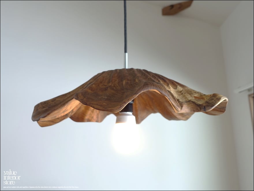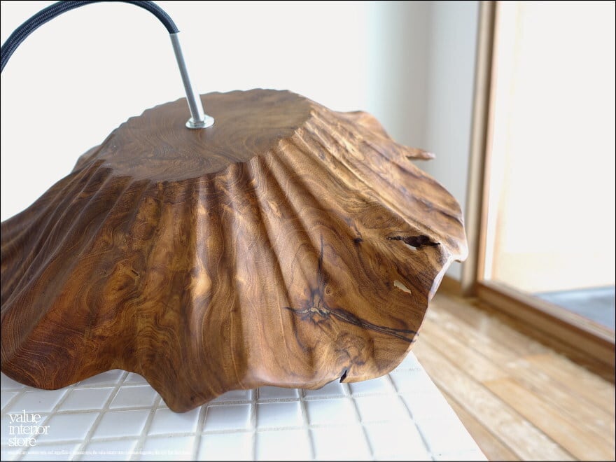 チーク無垢材 ペンダントライトFlareW03/Lsize 天井照明 照明器具 ランプシェード 明かり 吊り下げ灯 手作り 削り出し 世界三大銘木