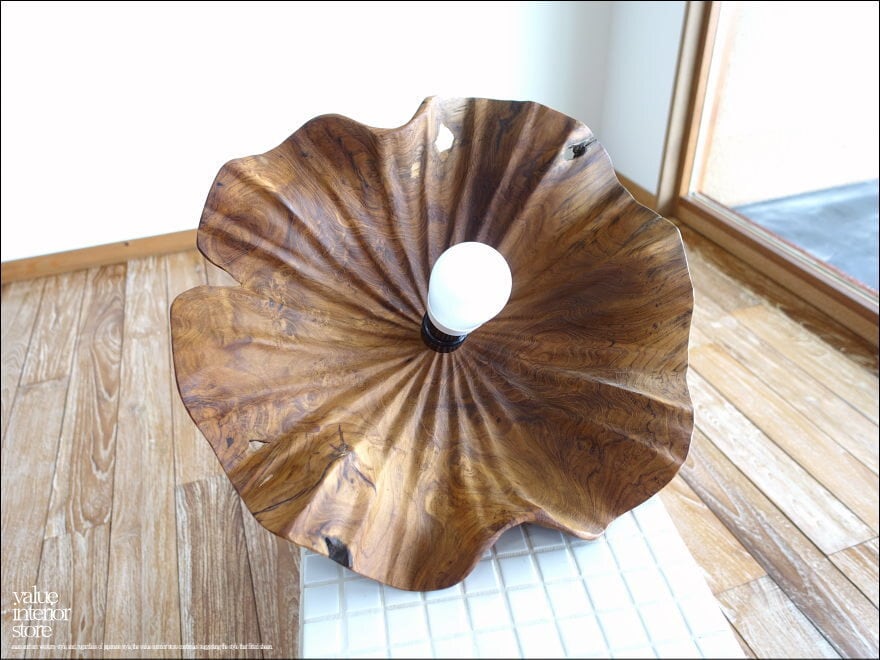 ◇日本製のような正確さは無いかもしれませんが、1点1点出来上がるまでの殆どの工程を手作業で行うインドネシア職人たちの手造りの製法にはとても暖か味が感じられます。ひび割れやフシ、穴、また反りなどの無垢材特有の”暴れ”、器具とシェードの中心の傾きなど見受けられる場合がございますが、素材や手づくりのテイストとして工業品にない自然の質感をお楽しみ下さい。