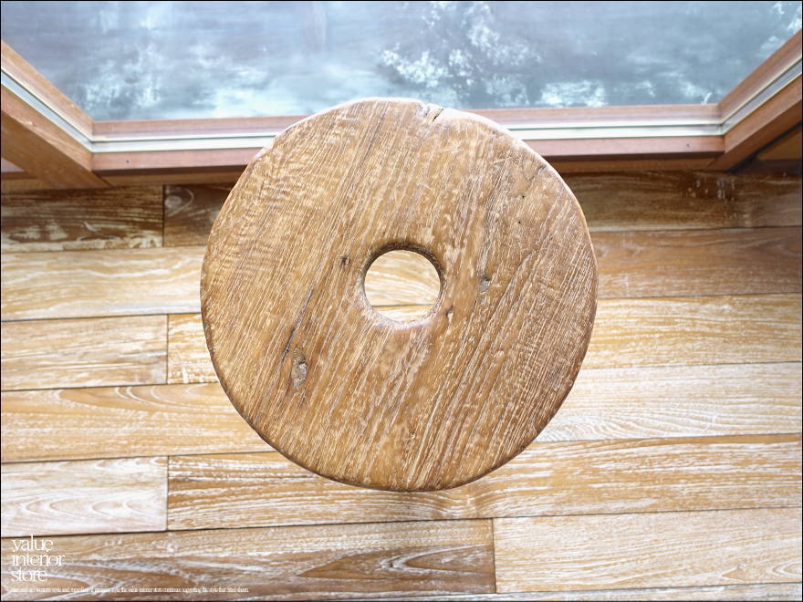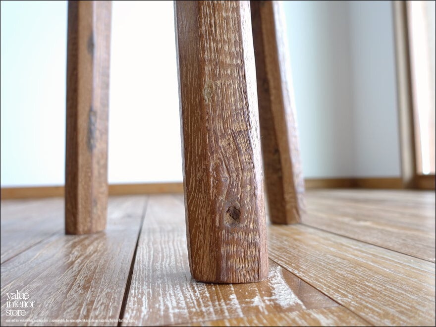 オールドチークならではの渋く落ち着いた雰囲気を持つ丸スツール。座面にはチーク材のアグレッシブで荒々しい個性的な木肌が現れています。
