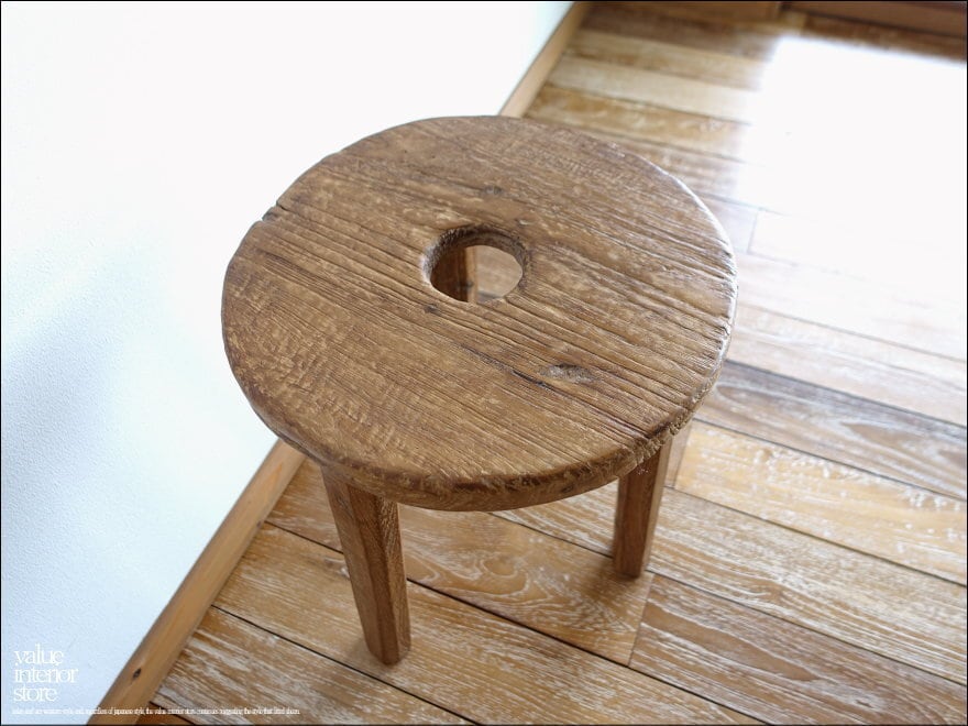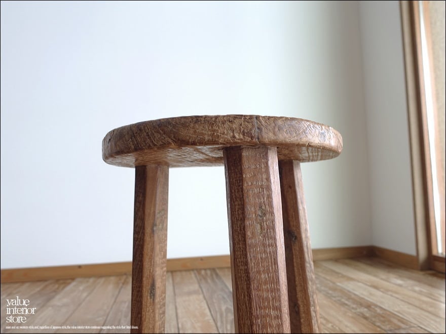 オールドチーク無垢材 プリミティブ丸スツール/03 椅子 花台 古材スツール ナチュラル カフェチェア 無垢材家具