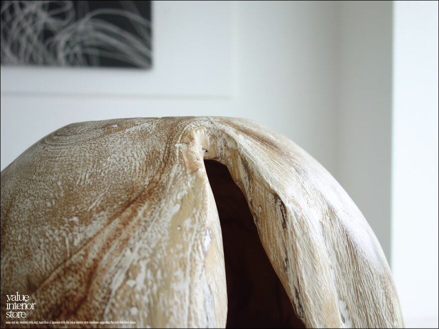 ※1点1点出来上がるまでの殆どの工程を手作業で行う、インドネシア職人たちの手造りの製法にはとても暖か味が感じられます。細かな傷、ワレやフシ穴、色ムラや濃淡、凹凸や反り、穴などの無垢材特有の”暴れ(業界用語です)”やプリミティブな自然な様がございますが、手工業のよさとして工業品にはない自然の質感をお楽しみ下さい。