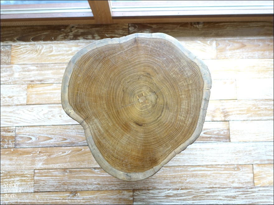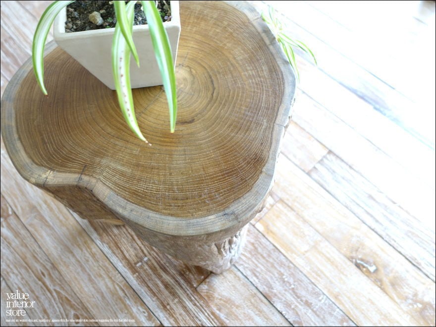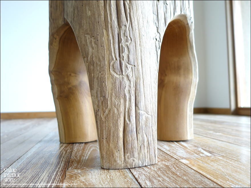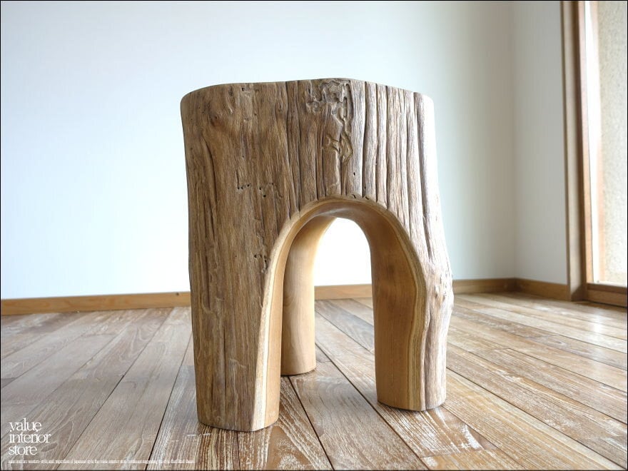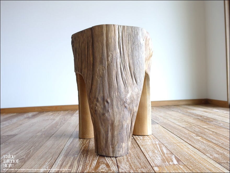 チーク無垢材 削り出しスツールTrin イス プリミティブチェア 丸太 ベンチ 椅子 花台 ナチュラル 素朴 一点物