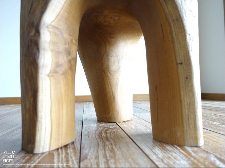 一本のチーク材から削り出して製作したスツール。硬く荒々しいチーク材独特の質感が感じられます。表面はナチュラルで、渋く変わり行くチーク独特の色の変化(いわゆる徐々にチークカラーへの変化)をお楽しみいただけます。ナチュラルでシンプルなデザインで幅広いテイストの空間に似合います。スローダウンした雰囲気づくりをどうぞ。