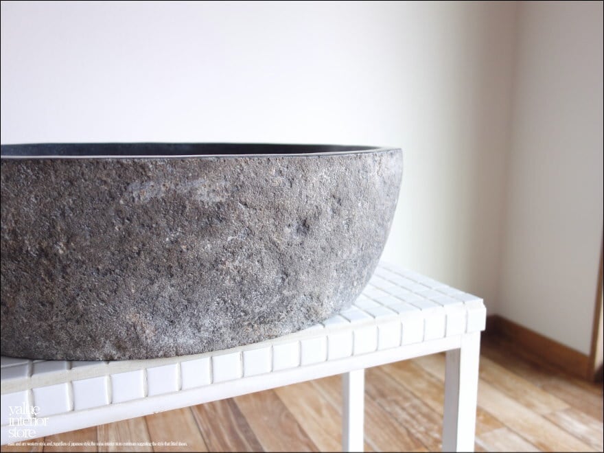 ◇日本製のような正確さは無いかもしれませんが、1点1点出来上がるまでの殆どの工程を手作業で行うインドネシア職人たちの手造りの製法にはとても暖か味が感じられます。また自然石の特徴上、外側の表面は穴や打ち傷、欠けやひび割れ、本体に傾きなどが見受けられる場合がありますが、素材のテイストとしてご了承ください。