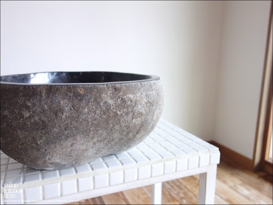 一つとして同じ形のない自然に作られたボウル状の形と色合いや質感に、落ち着いた和の雰囲気が感じられる自然石の洗面ボウル。ご自宅やお店の手洗い鉢として、またエクステリアの立水栓の水受けのアクセントとしてぜひお役立てください。