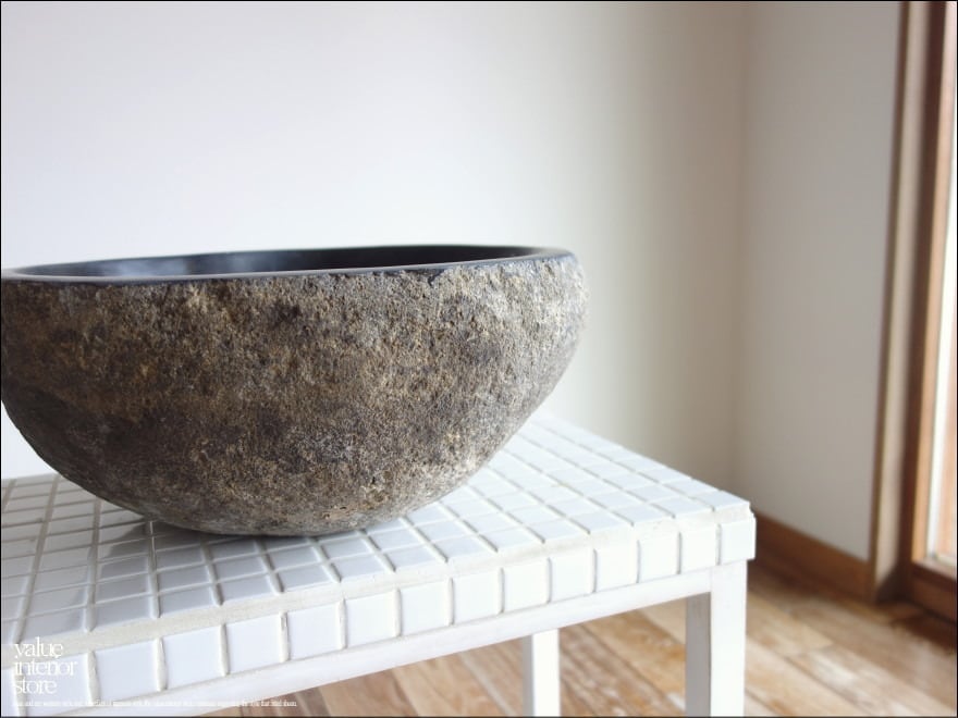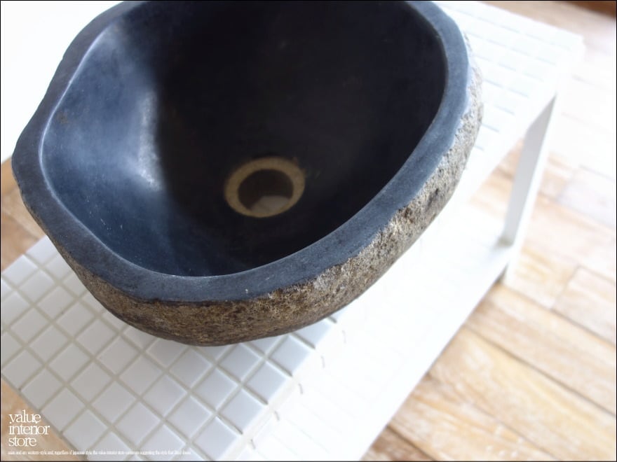 一つとして同じ形のない自然に作られたボウル状の形と色合いや質感に、落ち着いた和の雰囲気が感じられる自然石の洗面ボウル。ご自宅やお店の手洗い鉢として、またエクステリアの立水栓の水受けのアクセントとしてぜひお役立てください。