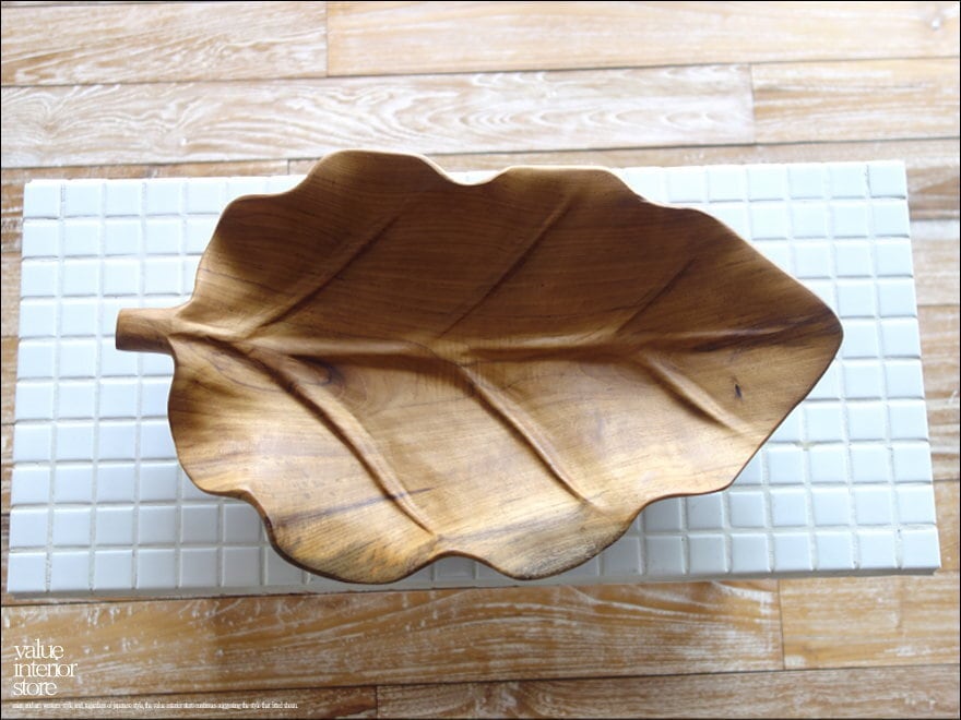 チーク無垢材 大型リーフプレートN07 大皿 盛り皿 菓子鉢 サラダボウル フルーツトレイ 木製食器 小物入れ ナチュラル 天然素材
