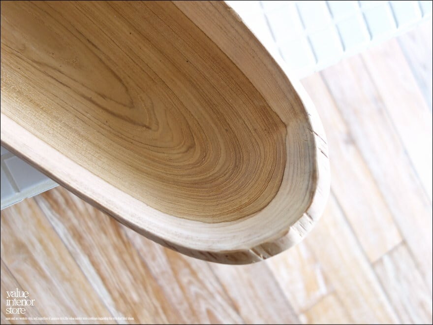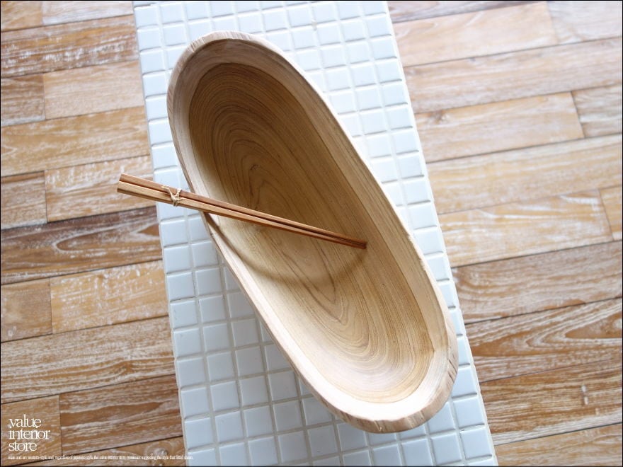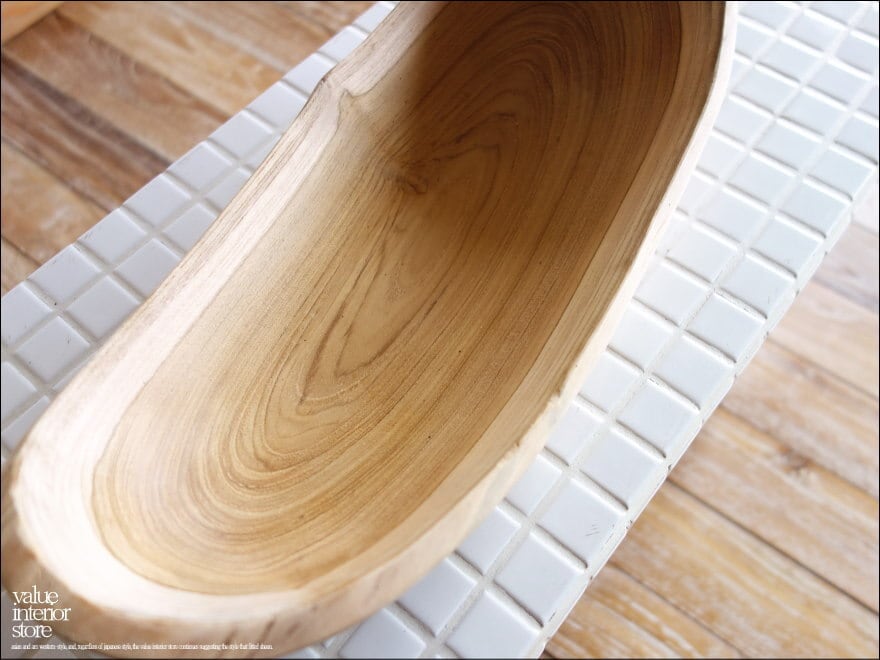 変化に富んだプリミティブで素朴な質感のチーク無垢材の大型ロングトレイ。同じ形の無い味のある形は一点物の良さを感じさせてくれます。表面はミネラルオイル(ライム油・大豆油・チョウジ油・ナツメグ油)仕上げで、サラダボウルなどの食器としてもお使いいただけます。(食品等輸入届出書提出済)