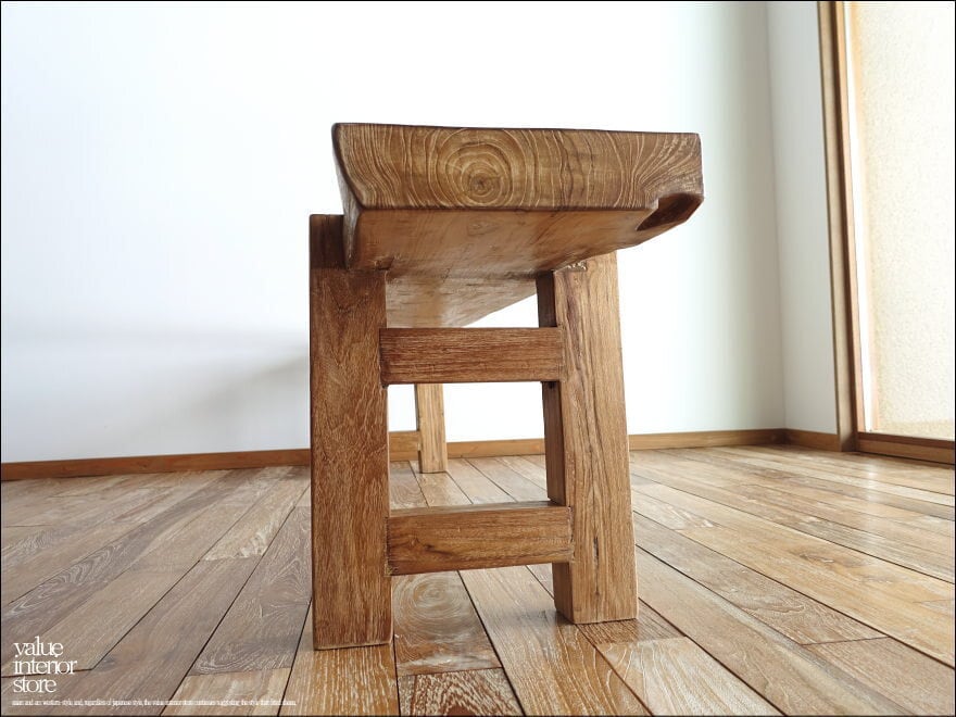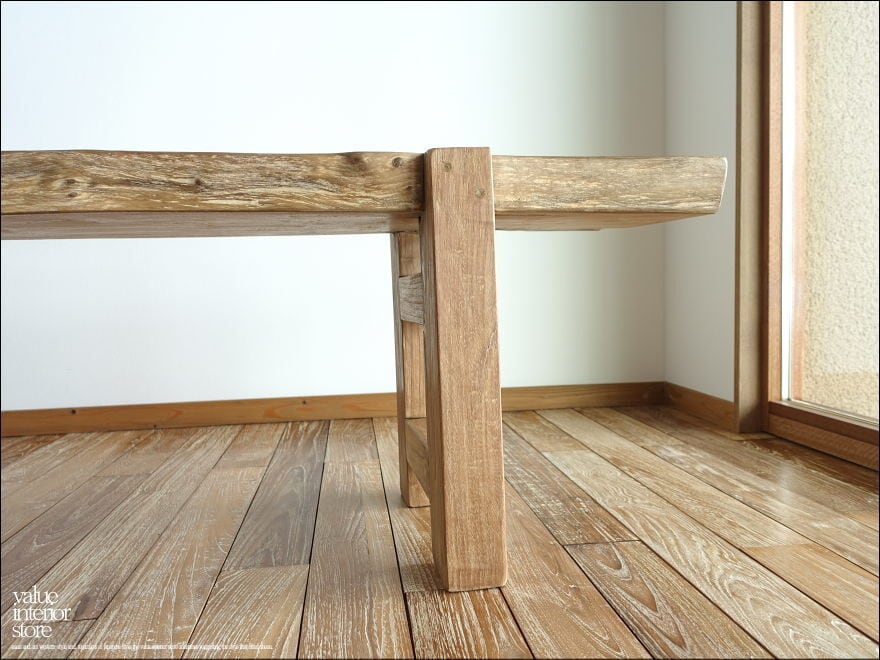 オールドチークベンチN208cm 長椅子 古材家具 ダイニングベンチ プリミティブ 無垢材 ナチュラル 椅子 世界三大銘木