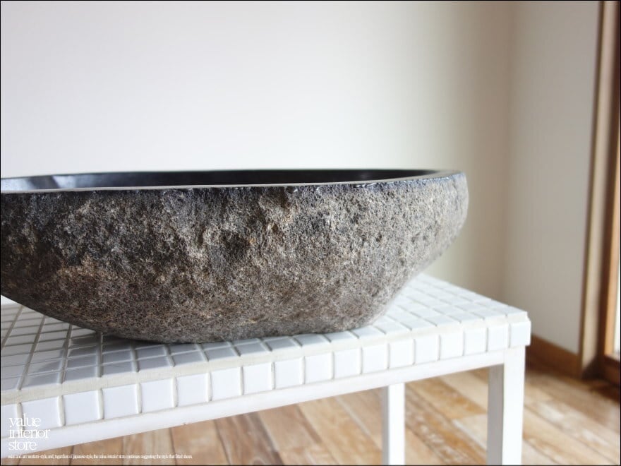一つとして同じ形のない自然に作られたボウル状の形と色合いや質感に、落ち着いた和の雰囲気が感じられる自然石の洗面ボウル。ご自宅やお店の手洗い鉢として、またエクステリアの立水栓の水受けのアクセントとしてぜひお役立てください。