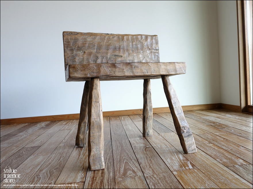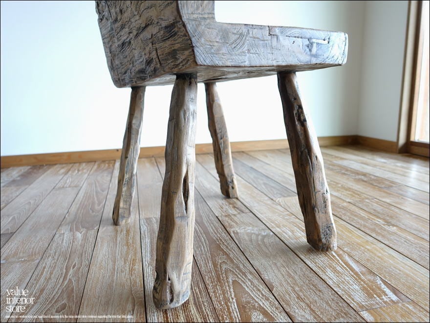 プリミティブチェアHac スツール 椅子 イス オールドチーク無垢材 ベンチ 古材家具 一点物 世界三大銘木