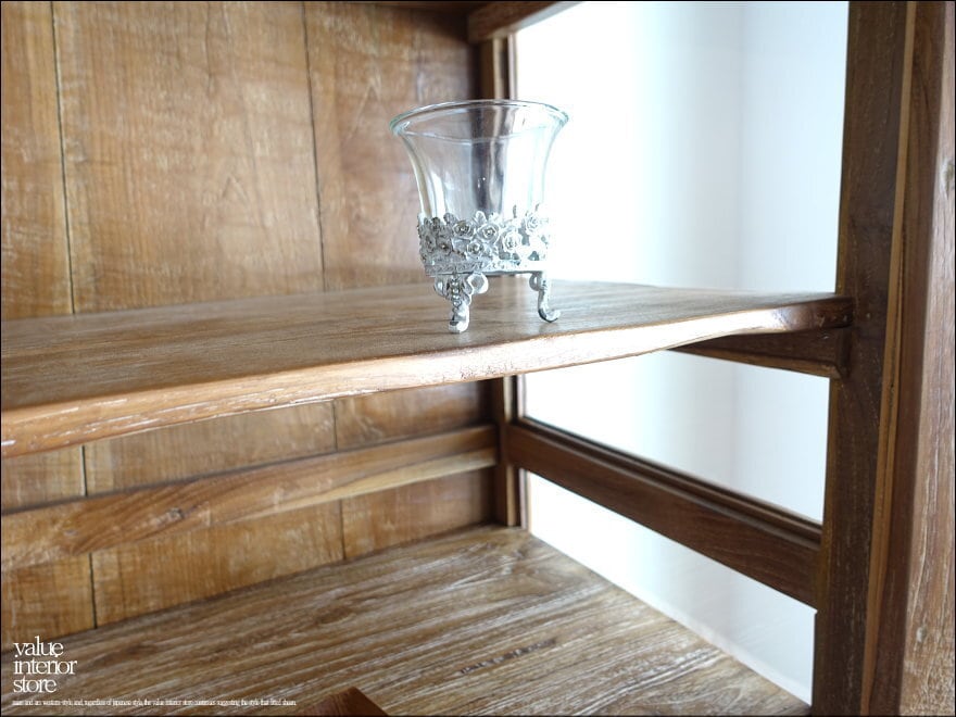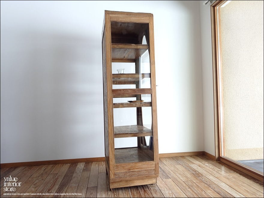 チーク無垢材 ヴィンテージキャビネットBols 食器棚 ショーケース 陳列棚 什器 アンティーク飾り棚 再生家具 表面再仕上 世界三大銘木 idavin