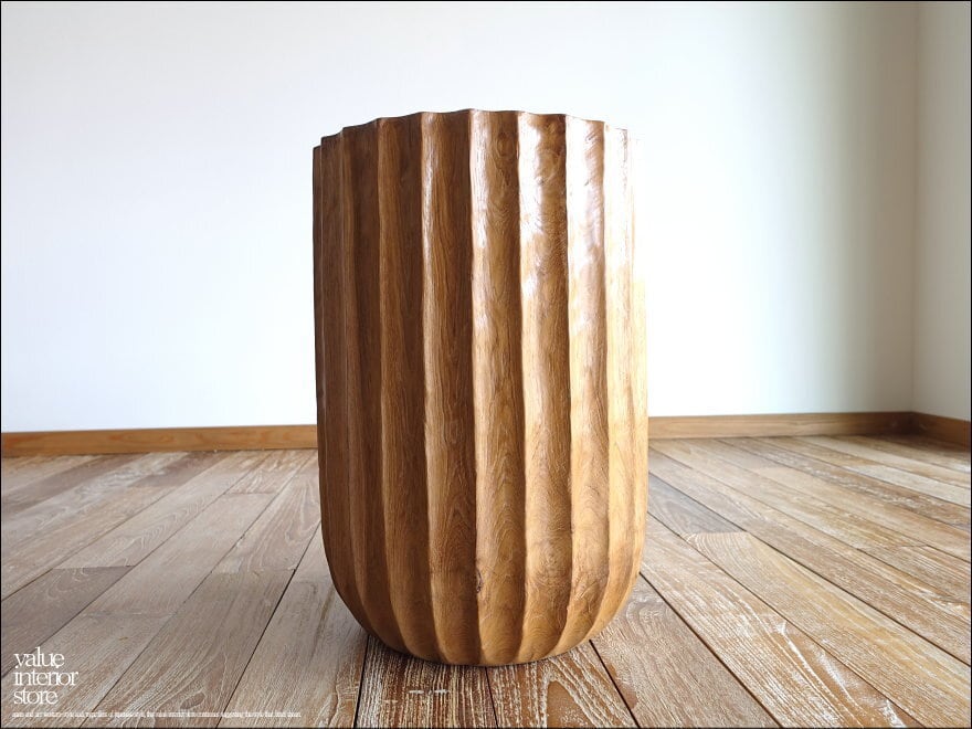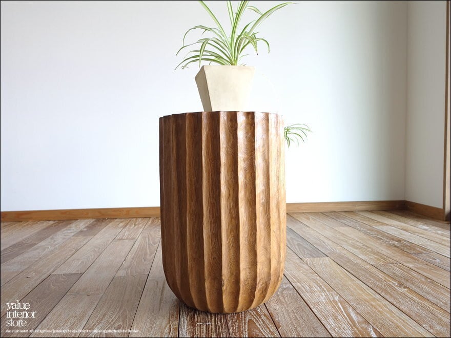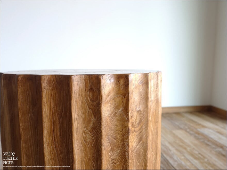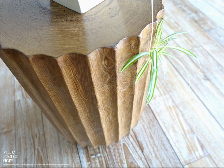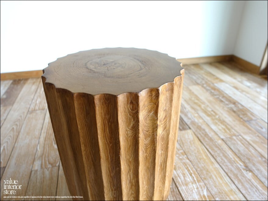 一本のチーク材から削り出して製作したスツール。硬く荒々しいチーク材独特の質感が感じられ、縦に入った側面のラインが引き締まった印象に仕上がっています。表面はナチュラルで、渋く変わり行くチーク独特の色の変化(いわゆる徐々にチークカラーへの変化)をお楽しみいただけます。