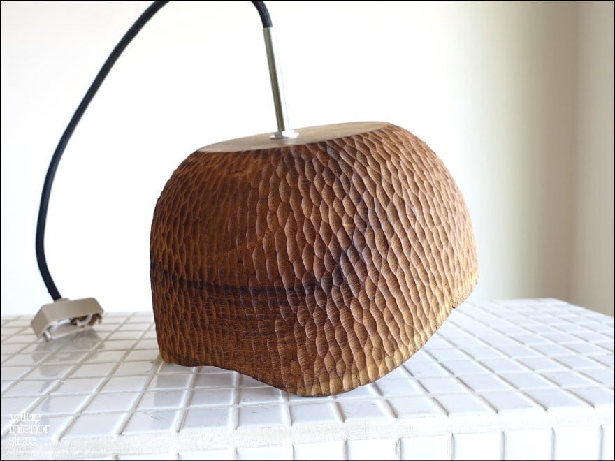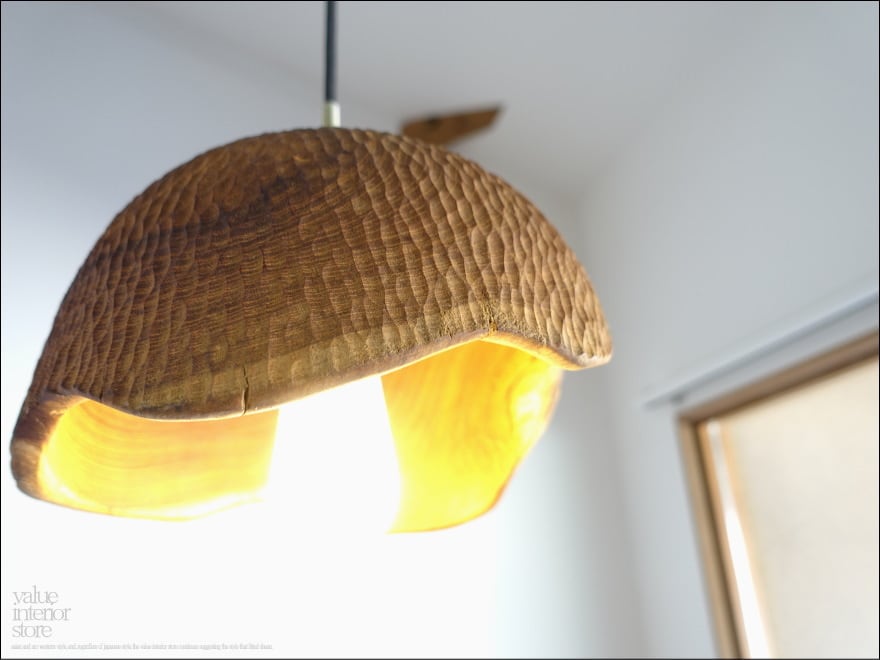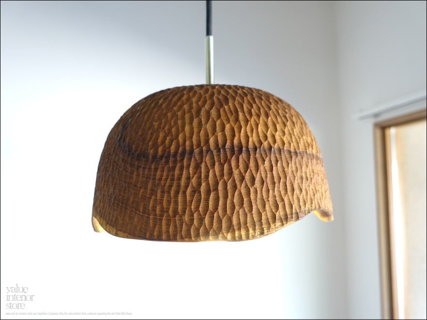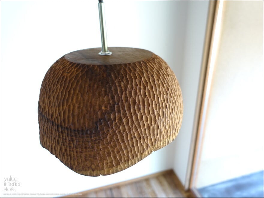 プリミティブな無垢材シェードの表面に手彫りで凹凸をつけた飾りが、何とも雰囲気があり、温かみを感じさせてくれます。空間のアクセントづくりにどうぞお役立てください。天井電源コネクターは、一般家庭用の引っ掛けシーリングタイプ(安全ストッパー付き)。・コードは長さ調節不可。電源は壁スイッチ操作。