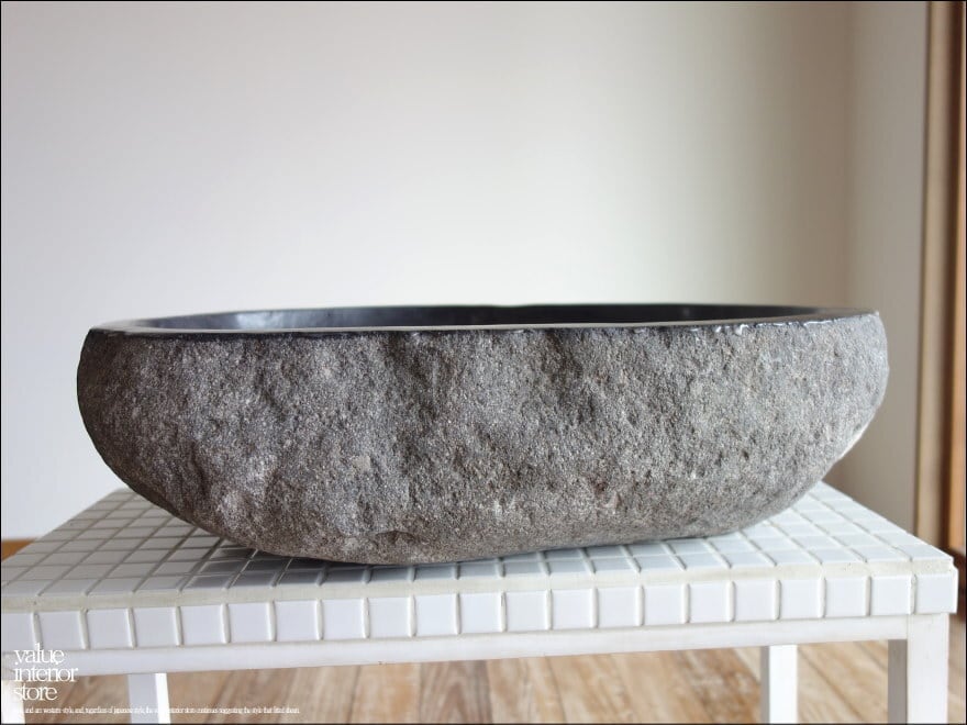 手洗鉢 自然石 洗面ボウルL-A95 洗面器 手洗いボウル 手洗い器 ウォッシュボウル 洗面資材 洗面材料 W54 x D40 x H14.5cm idawash