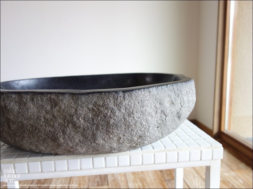 一つとして同じ形のない自然に作られたボウル状の形と色合いや質感に、落ち着いた和の雰囲気が感じられる自然石の洗面ボウル。ご自宅やお店の手洗い鉢として、またエクステリアの立水栓の水受けのアクセントとしてぜひお役立てください。