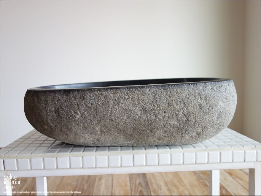 手洗鉢 自然石 洗面ボウルL-A98 洗面器 手洗いボウル 手洗い器 ウォッシュボウル 洗面資材 洗面材料 W51.5 x D37 x H14.5cm idawash