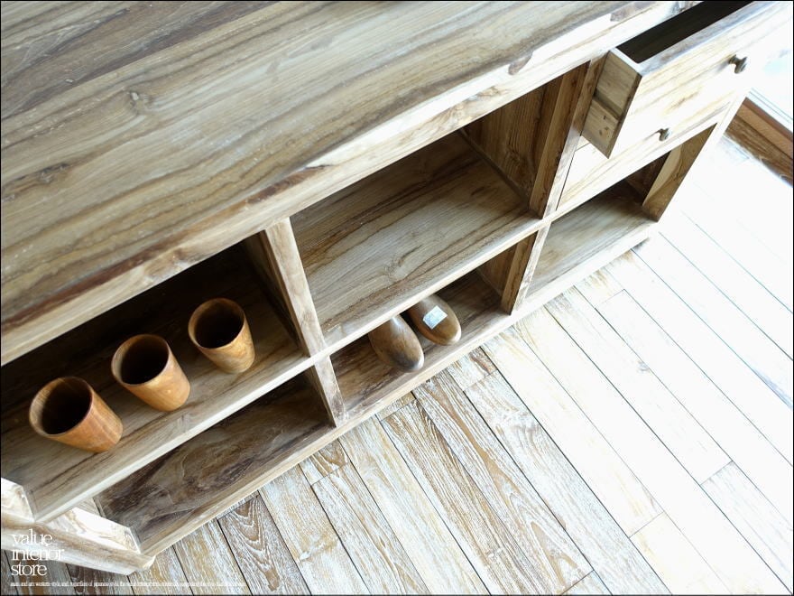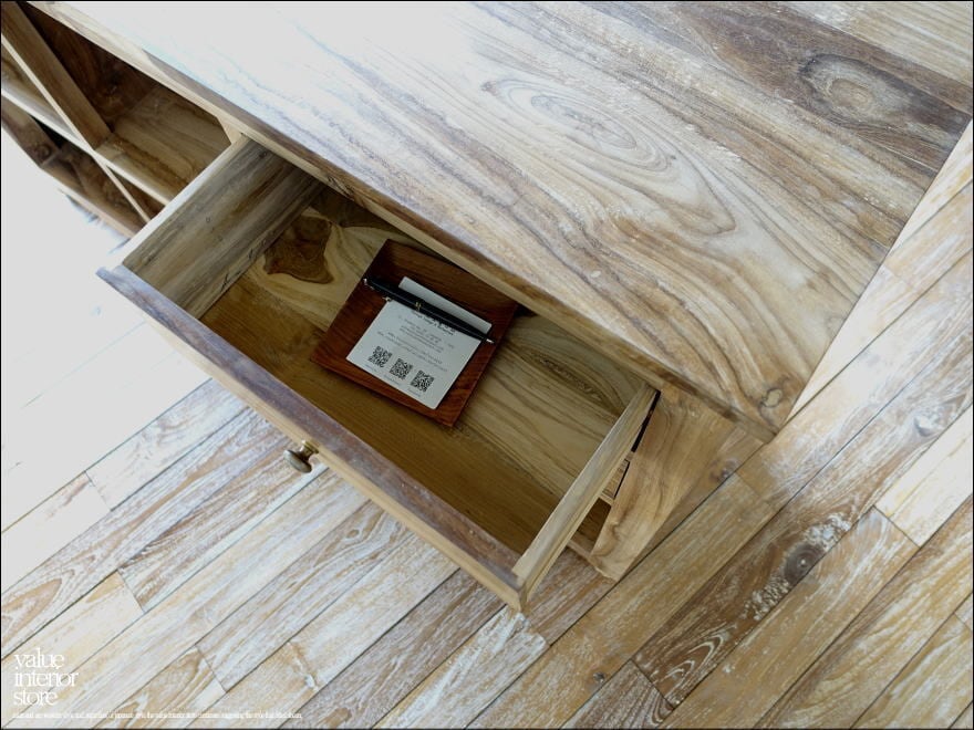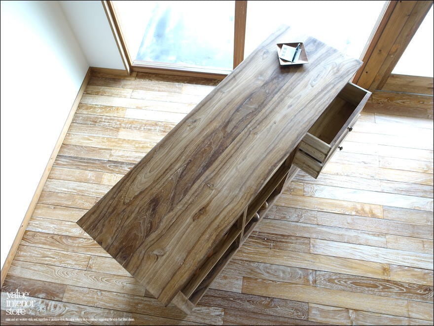 ◇日本製のような正確さは無いかもしれませんが、一つ一つ出来上がるまでの殆どの製作工程を手作業で行う、インドネシア家具職人たちの手づくり製法はとても暖か味が感じられます。細かな傷、ひび割れやフシ穴、お色の濃淡、また反りなどの無垢材特有の”暴れ”や修理痕が見受けられる場合がございますが、無垢材の素材や特徴、また手づくりのテイストとして工業品にはない自然の質感をお楽しみ下さい。