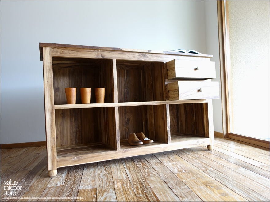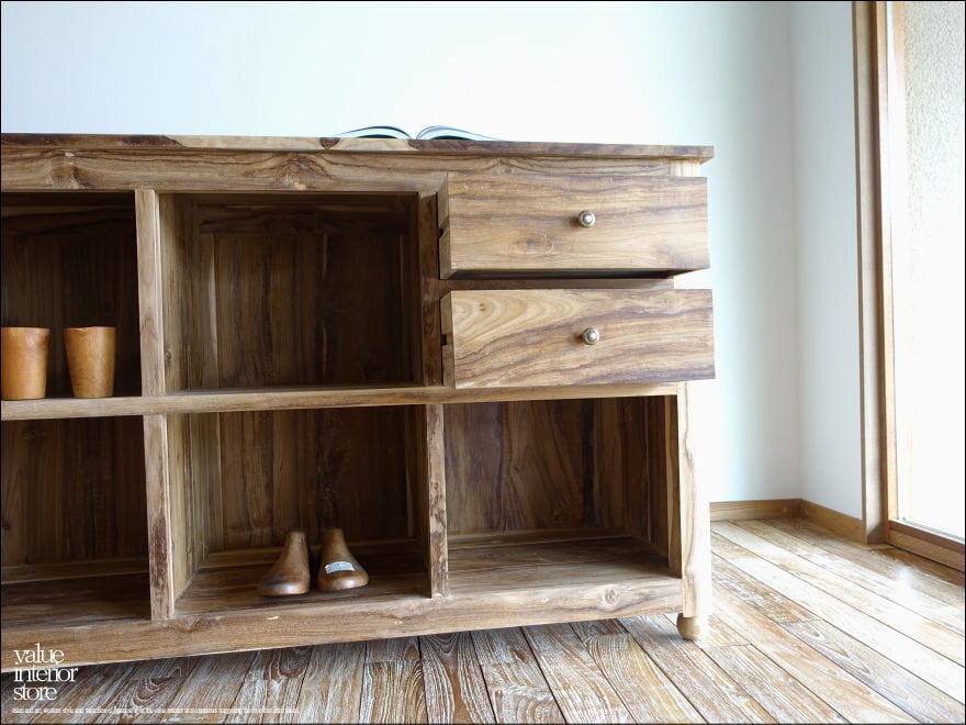 *材質 : チーク総無垢、真鍮(引き出し取っ手)