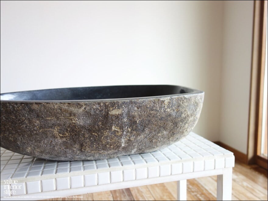 ◇日本製のような正確さは無いかもしれませんが、1点1点出来上がるまでの殆どの工程を手作業で行うインドネシア職人たちの手造りの製法にはとても暖か味が感じられます。また自然石の特徴上、外側の表面は穴や打ち傷、欠けやひび割れ、本体に傾きなどが見受けられる場合がありますが、素材のテイストとしてご了承ください。
