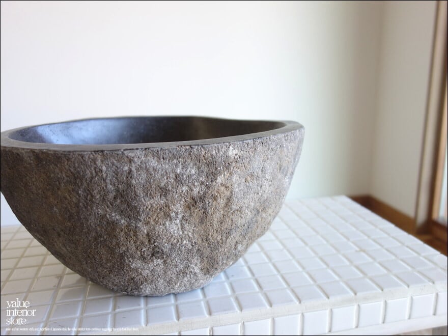 一つとして同じ形のない自然に作られたボウル状の形と色合いや質感に、落ち着いた和の雰囲気が感じられる自然石の洗面ボウル。ご自宅やお店の手洗い鉢として、またエクステリアの立水栓の水受けのアクセントとしてぜひお役立てください。