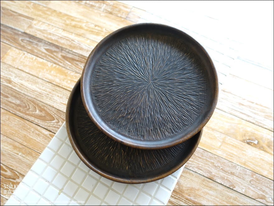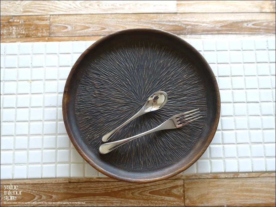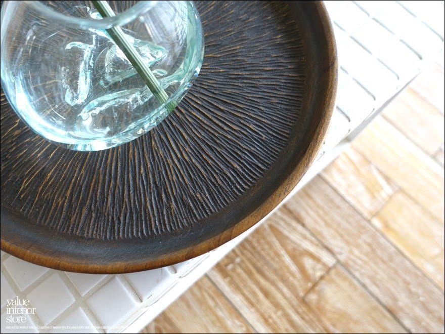 手彫りで仕上げられた幾本もの細い線が印象的なチークトレイ“culaire” こちらはインドネシアでも優れた技術を持つ職人さんが手掛けられたお品で、日本のお祭りの御神輿を依頼される程の腕前があり、日本の作家さんの作品と言ってよい程の高い技術レベルがあります。お盆やインテリアを飾る台としてどうぞお使いください。