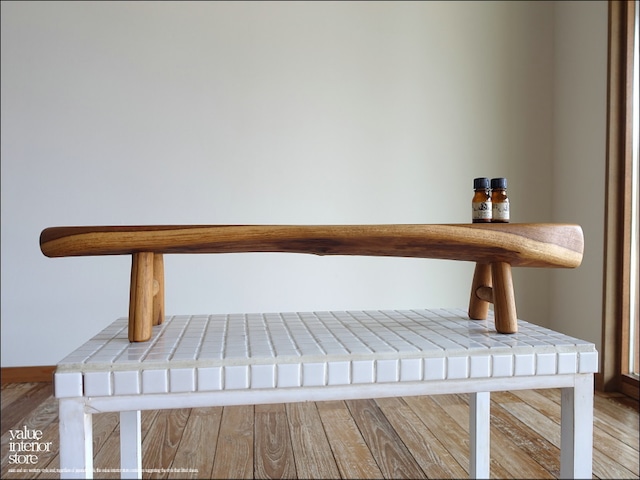 自然な曲線が天然無垢材の良さを感じさせてくれる飾り台。滑らかに丁寧に仕上げていますので、全体から品質の良さが伝わって参ります。キッチンでスパイスラックとして、デスクの上の小物置として、お店で商品のディスプレイラックとしてお勧めいたします。