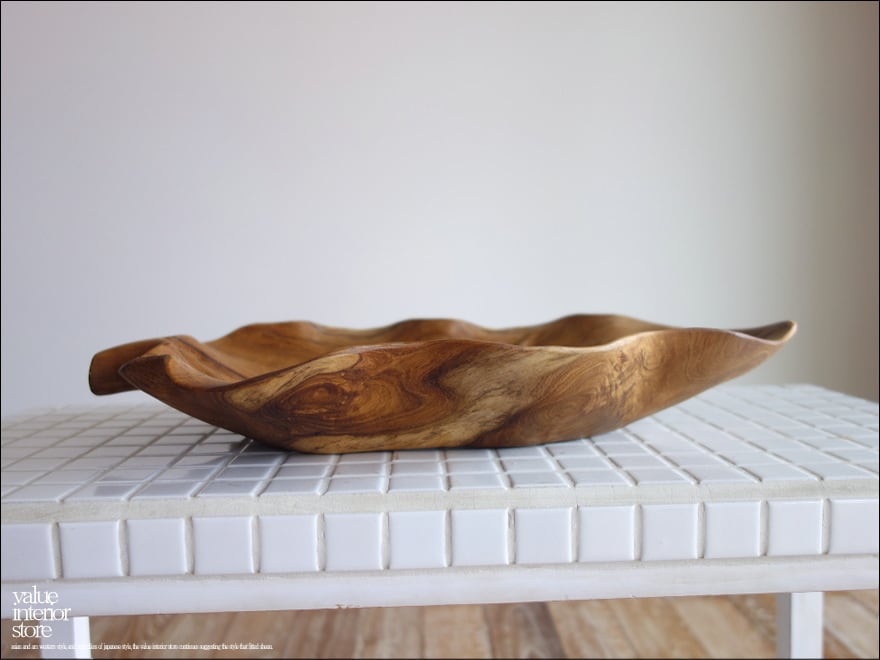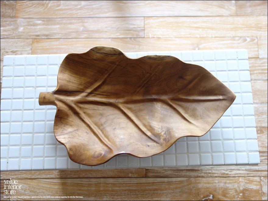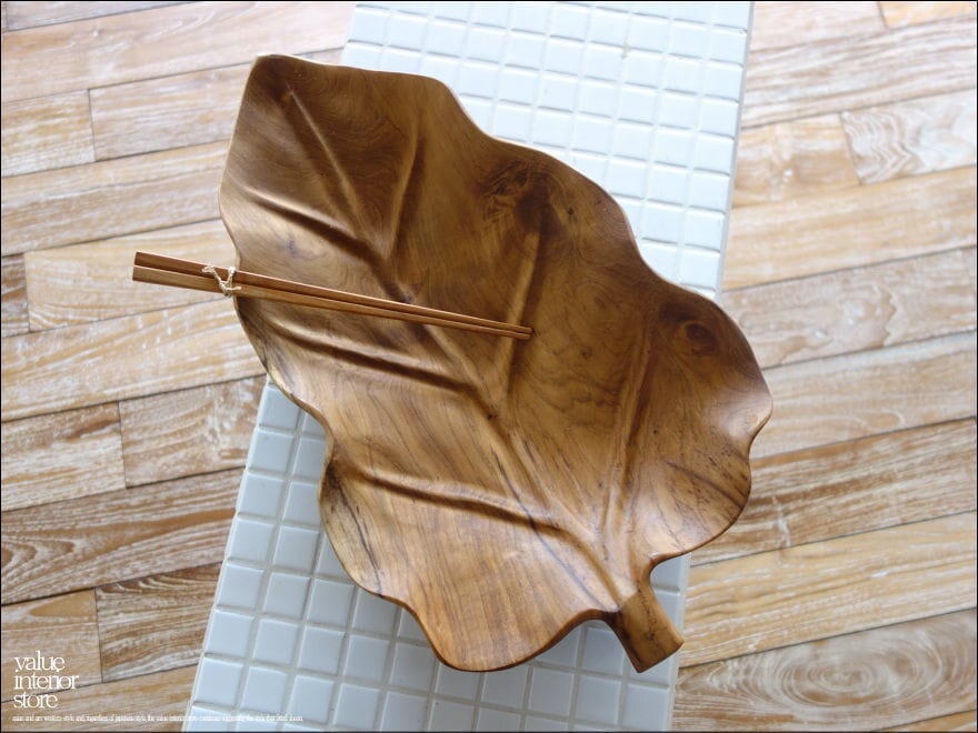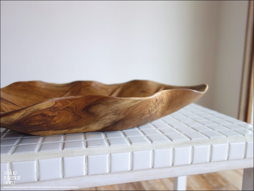 チーク無垢材 大型リーフプレートN08 大皿 盛り皿 菓子鉢 サラダボウル フルーツトレイ 木製食器 小物入れ ナチュラル 天然素材