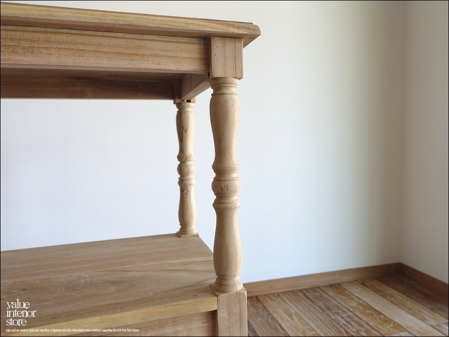 ナチュラルで素朴な質感は、経年変化でいわゆるチーク色へ徐々に変化していくところも楽しみの一つです。余分な装飾を無くしたシンプルな棚板と、丸く柔らかな印象の脚とのバランスがとってもかわいいですよ♪