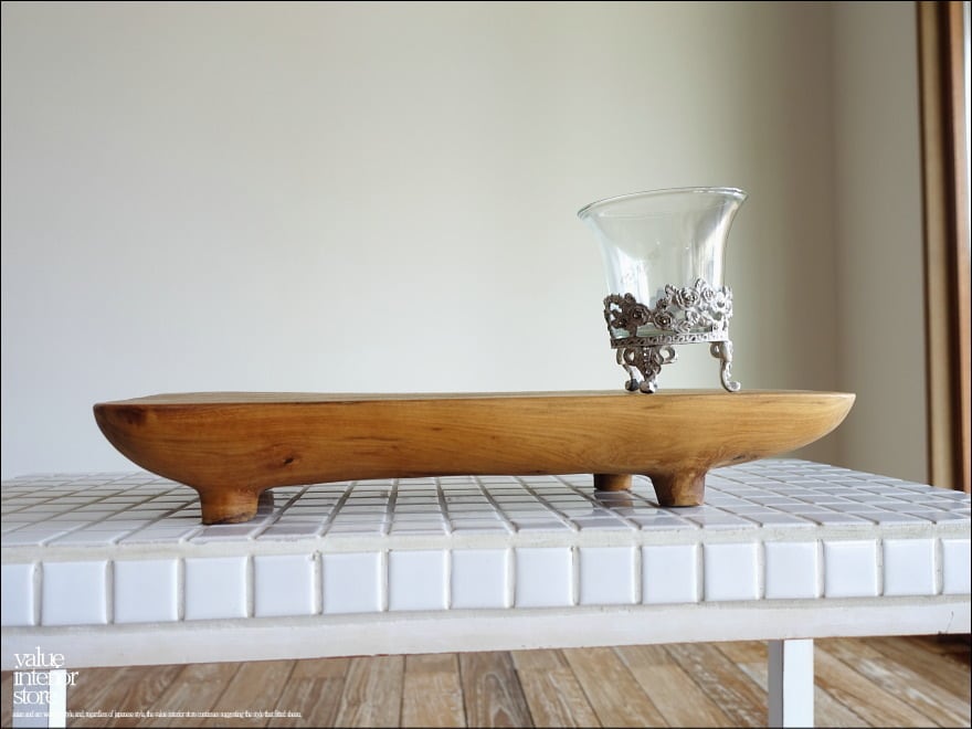無垢材を削り出して製作するプリミティブトレイrfen。小物や植物を飾ったり、ディスプレイトレイとして便利にお使いいただけます。チーク材は適度に良質の天然油分を豊富に含み、素材が腐りにくいため洗面用品のトレイとしてもお勧めです。
