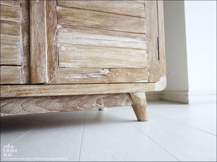 ※日本製のような正確さは無いかもしれませんが、1点1点出来上がるまでの殆どの工程を手作業で行う、インドネシア家具職人たちの手造りの製法にはとても暖か味が感じられます。細かな傷、ワレやフシ穴、色ムラや濃淡、また反り、チークの油分が滲み出たことによる変色などの無垢材特有の”暴れ(業界用語です)”が見受けられる場合がございますが、手工業のよさとして工業品にはない自然の質感をお楽しみ下さい。