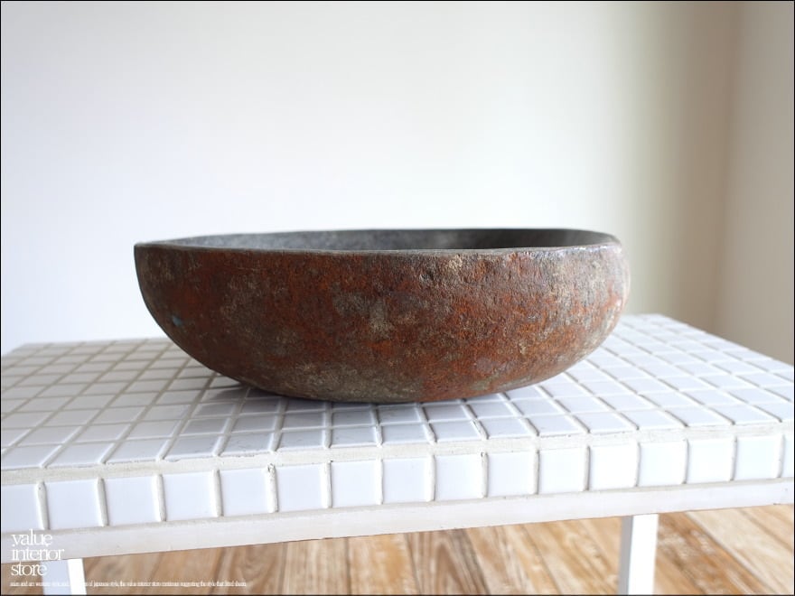 ◇日本製のような正確さは無いかもしれませんが、1点1点出来上がるまでの殆どの工程を手作業で行うインドネシア職人たちの手造りの製法にはとても暖か味が感じられます。また自然石の特徴上、外側の表面は穴や打ち傷、欠けやひび割れ、本体に傾きなどが見受けられる場合がありますが、素材のテイストとしてご了承ください。