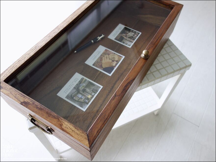 両サイドの真鍮製のハンドルも経年の雰囲気を漂わせます。お気に入りのコレクションの収納ケースにどうぞ。