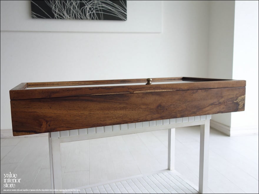 コレクションケース80T 無垢 ガラスケース ショーケース チーク総無垢 レトロ調 真鍮ハンドル 硝子ケース 什器 木製 銘木 送料無料 80x40cm