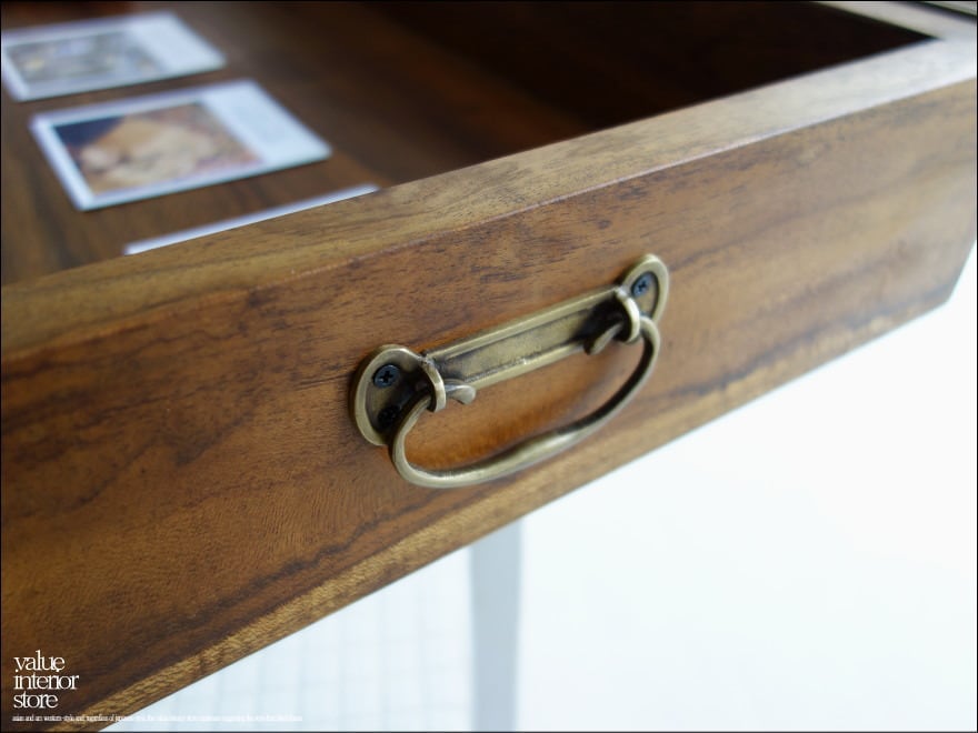 両サイドの真鍮製のハンドルも経年の雰囲気を漂わせます。お気に入りのコレクションの収納ケースにどうぞ。