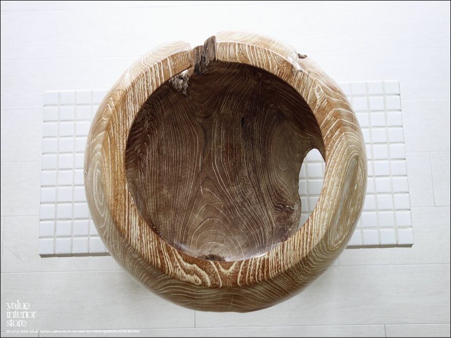 ※1点1点出来上がるまでの殆どの工程を手作業で行う、インドネシア職人たちの手造りの製法にはとても暖か味が感じられます。細かな傷、ワレやフシ穴、色ムラや濃淡、凹凸や反り、穴などの無垢材特有の”暴れ(業界用語です)”やプリミティブな自然な様がございますが、手工業のよさとして工業品にはない自然の質感をお楽しみ下さい。