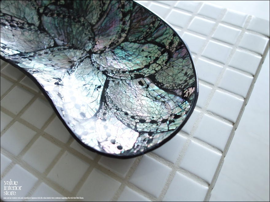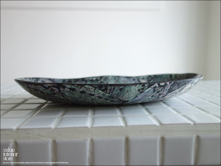 リゾートの雰囲気を感じさせるシェルトレイ。見る角度によって輝き方が異なり幻想的な印象があります。パンプレートとして、インテリア小物をディスプレイしたり、アクセサリーを飾ったりしてお楽しみください。