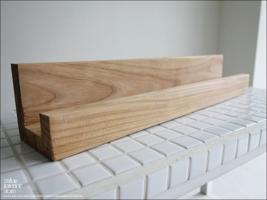 チーク無垢のシンプルなL型ウォールシェルフ。