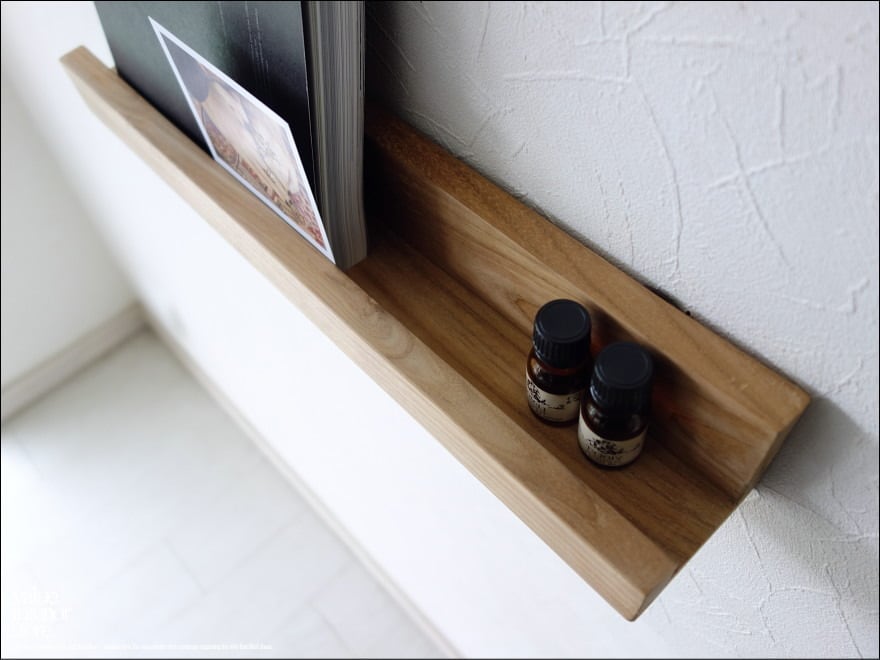 壁のお好きな場所にビスで固定して、小物などを飾ってお楽しみいただけます。また、複数ご購入いただき、縦に2段、3段とお使いいただくのもお勧めです。シンプルですが、できるだけ個性的な木目の材料を選びましたので、変化のあるナチュラルな雰囲気をお楽しみいただけます。